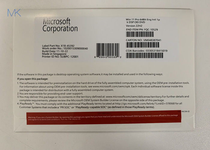 Microsoft OEM सिस्टम बिल्डर Windows 11 व्यावसायिक OEM 64-बिट OEI DVD अंग्रेज़ी 22H2
